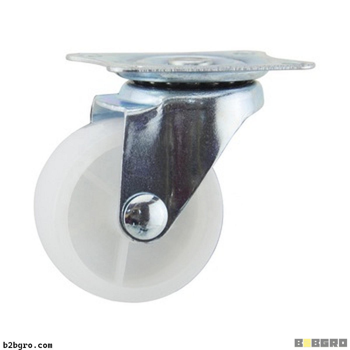 عجلة بلاستيكية بيضاء كلاسيكية، تستخدم في الأثاث الخفيف وتتميز بسلاسة الحركة على الأرضيات.